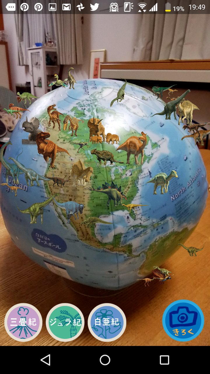 やり方はかんたん、1.アースボールを手に入れる、2.アプリをiPadやスマホにダウンロードする、3.スマホを通してアースボールを見たら、こんな画像が現れるよ!